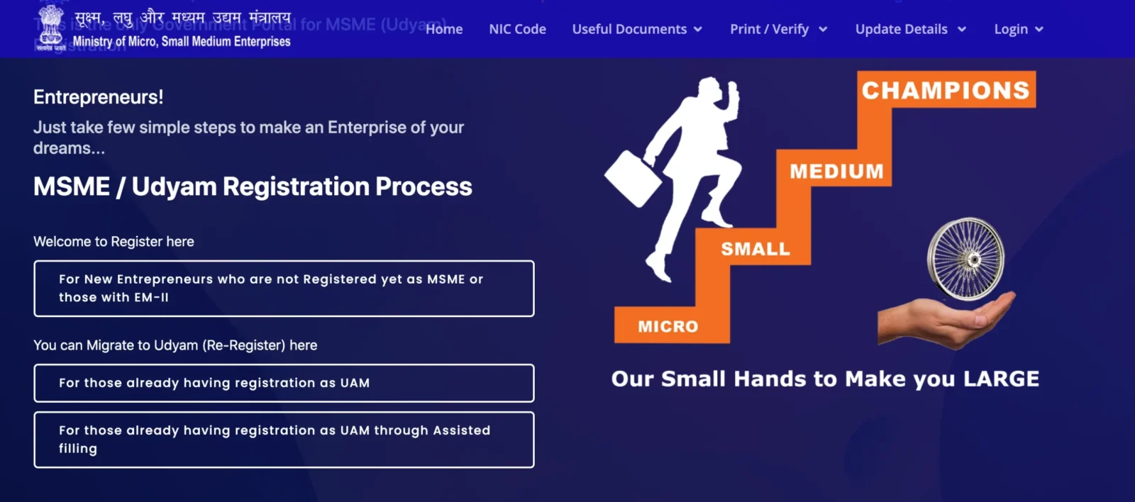 Udyam registration via official government portal